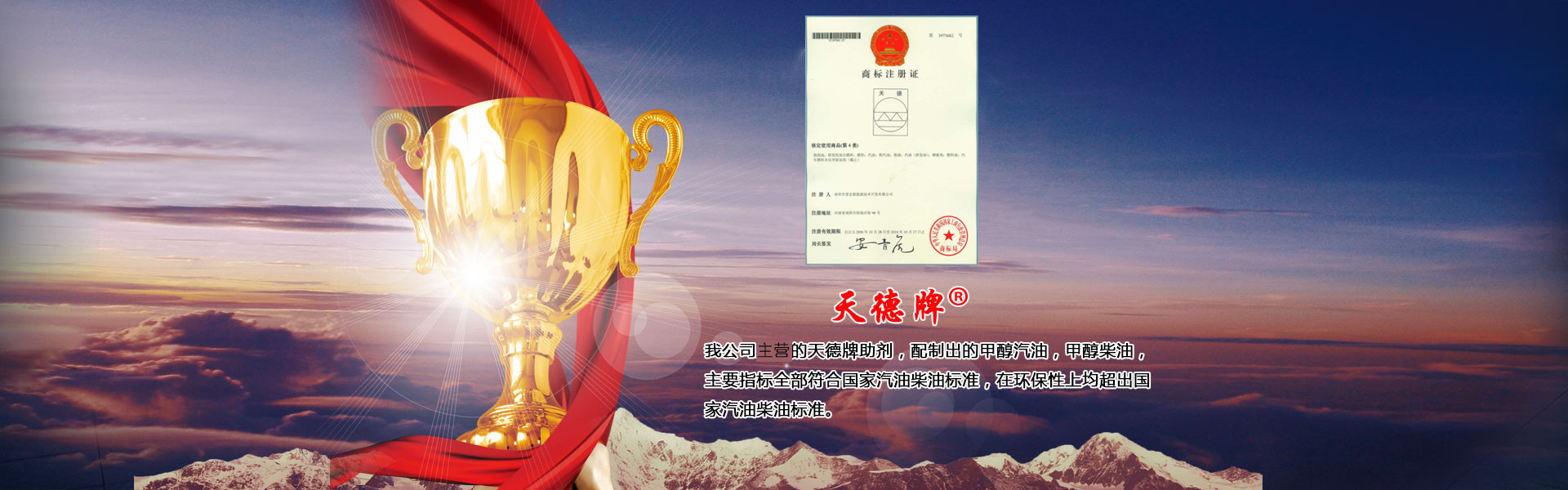 本公司主要產(chǎn)品有甲醇汽油添加劑、甲醇柴油添加劑、車用復(fù)合柴油添加劑、甲醇燃料油添加劑以及雙燃料控制器和油罐除水劑六大系列九種產(chǎn)品,具有廣闊的市場(chǎng)空間和經(jīng)濟(jì)效益。其中添加劑系列已在國(guó)家商標(biāo)局注冊(cè)為“天德牌”,天德牌問世二十多年來,在保證產(chǎn)品質(zhì)量的同時(shí),給廣大客戶帶來了可觀的經(jīng)濟(jì)利益,得到廣大油品行業(yè)用戶的一致好評(píng)…… 了解更多+